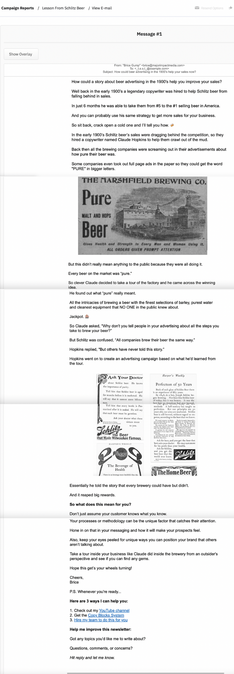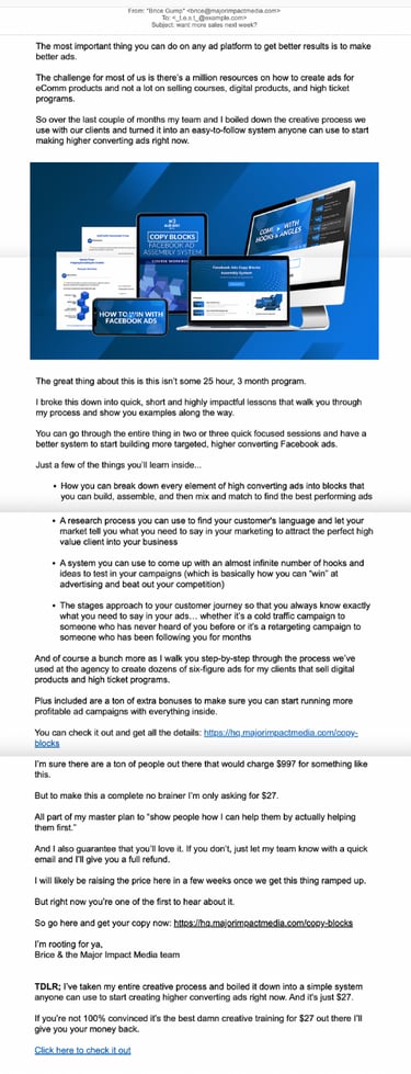 I was responsible for writing, crafting and sending out weekly emails to our email list to nurture our audience, keep them engaged, and help turn them into clients at the agency. With over 100 emails written, I honed my copywriting skills while providing valuable content through story-based emails or emails centered around our new content. Additionally, I sent out emails about our internal marketing promotions and direct response emails to encourage our list to work with us at the agency. I was able to successfully engage our email list, build more authority, and drive conversions for the agency.